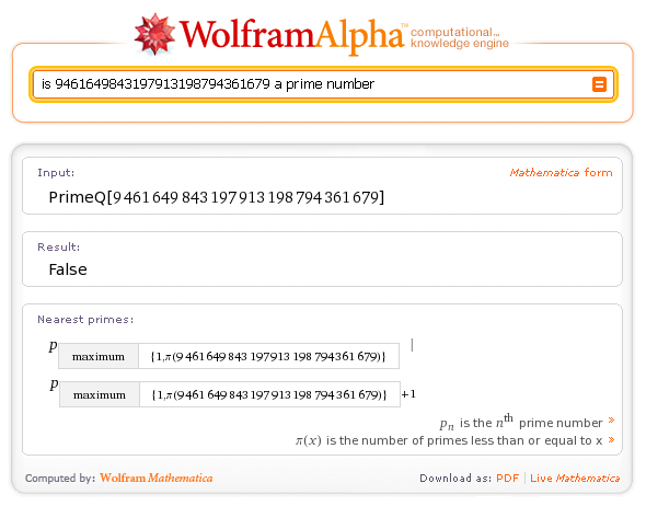 Heute Nacht um 2 wird vielleicht bereits Wolfram Alpha gestartet, eine Art Suchmaschine, die konkrete Fragen beantwortet. Also man stellt eine beliebige Frage und das Programm berechnet die Antwort. Anders als z.B. Google, das ja nur mehr oder weniger passende Dokumente liefert.
