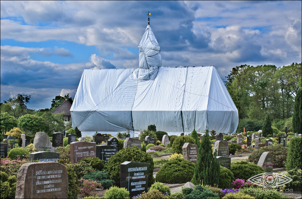 In Wittorf, einem Dorf in der Nähe von Visselhövede, wird dem Künstlerduo Christo von einem Schädlingsbekämpfer Konkurrenz gemacht. Um dem Holzbock Einhalt zu gebieten, wurde die komplette Kapelle eingepackt und begast. Ich habe die Chance genutzt und heute noch ein paar Fotos gemacht.