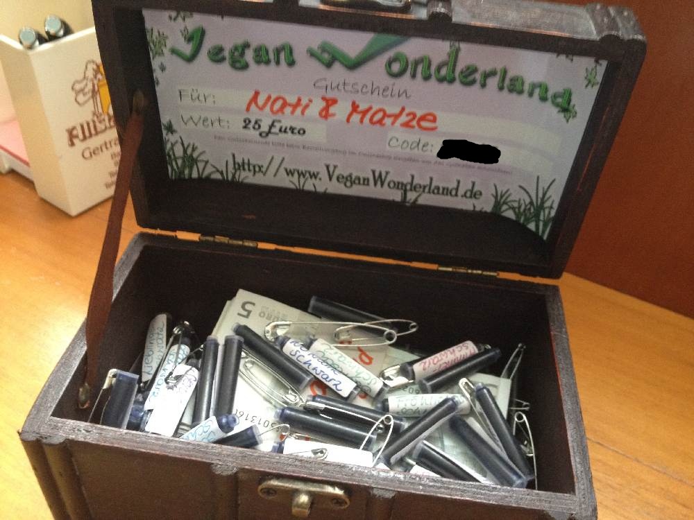 ... ach so, und hier noch das fabelhafte geschenk... tinte und sicherheitsnadeln kann man ja auch nie genug zuhause haben, son starterset von ebay ist schon was feines...
