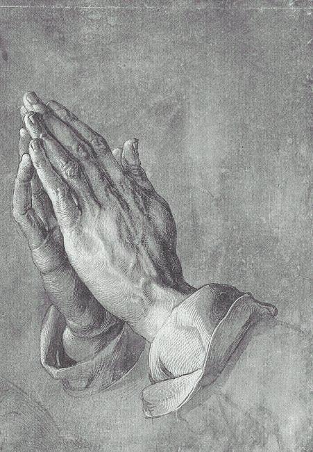 Nun bin ich nochmal in mich gekehrt, hab mir über das ganze Vorhaben Gedanken gemacht und bin zu dem Entschluß gekommen, daß Dürers betenden Hände auch ganz prima passen würden, denn dieses Motiv hat er geliebt und auch ich finde es sehr schön.
