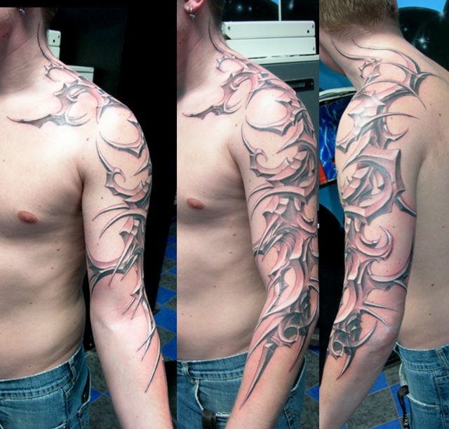 Naja, hab keine Ahnung von Tribals, aber es muss der Körperform folgen daher verstehe ich nicht wie man direkt vom Oberarm seitlich runter gehen kann (siehe Anhang). Was man da machen kann, vielleicht lasern.