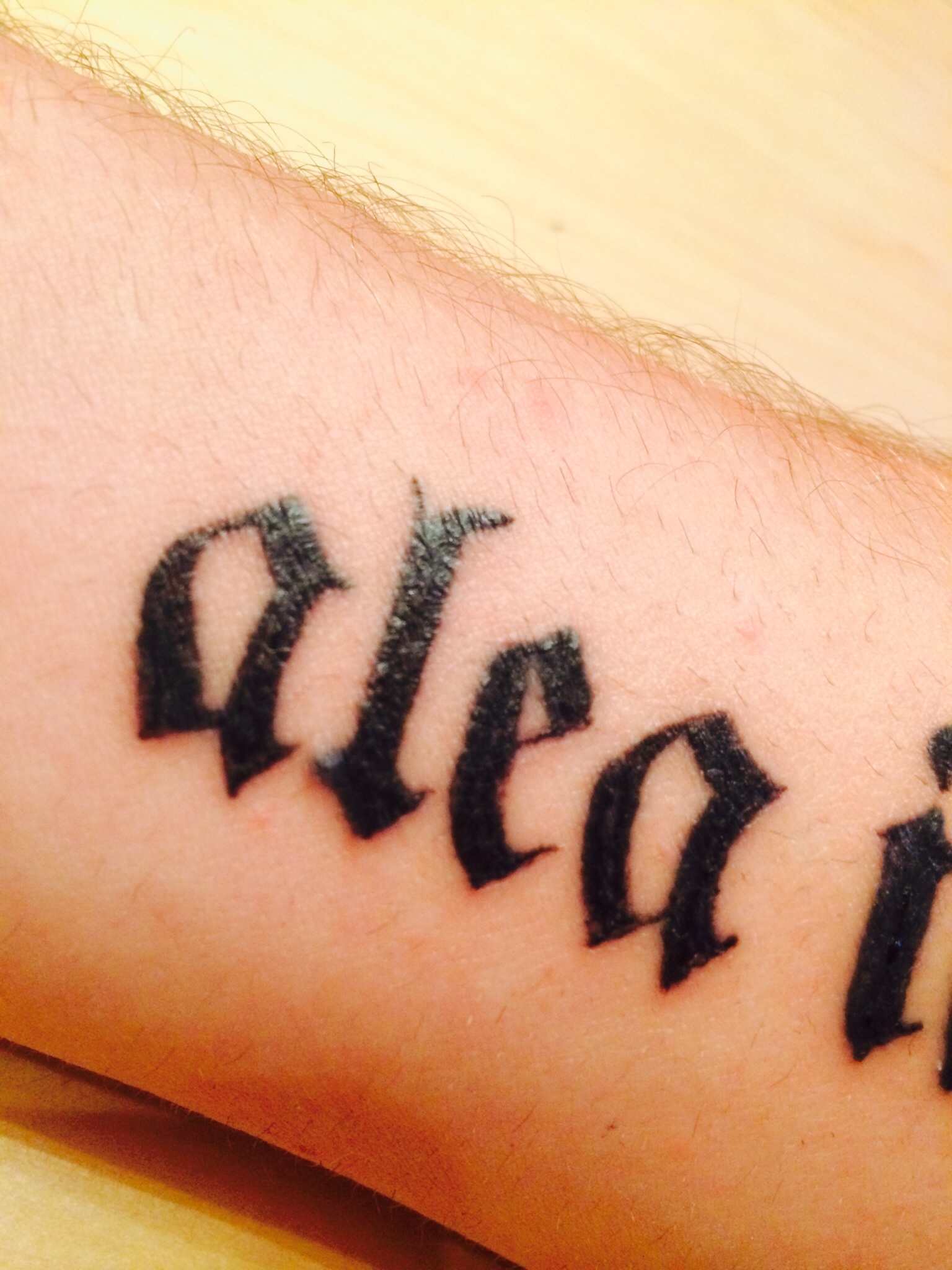 Scheissfoto :lol: Schrift verzieren erweitern ist immer so ne Sache ! Ich würd mich da von deinem Inker leiten lasse.