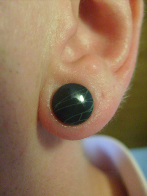 Soeben ohne jegliche Probleme von 8 auf 10 mm gedehnt :mrgreen: Der Dehnstab ist unter Einfluß von viel Babyöl quasi von selbst durchgerutscht 8) Plug ist aus schwarzem Obsidian (vulkanisches Natur-Glas)... Die rechte Seite sieht übrigens genau so aus - dort musste ich nur mit ein wenig Druck nachhelfen :wink: