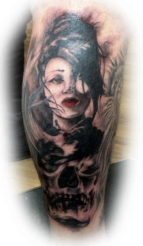 Frau mit Schädel